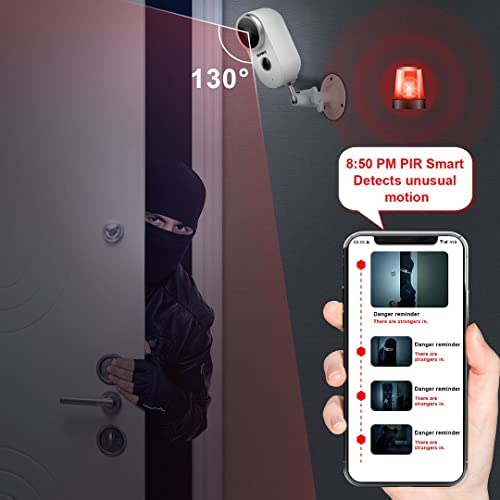 Detección de movimiento inteligente y sin cables: esta cámara de seguridad para el hogar al aire libre sin necesidad de cables es mucho más conveniente de instalar y es mucho más segura debido a su confiabilidad. El sensor PIR puede enviar notificaciones a su teléfono inteligente (Android o iPhone) cuando se detecta movimiento, proporcionando un mayor nivel de seguridad que evitará ladrones y ayudará a filtrar a los visitantes que puedan llegar a su puerta.